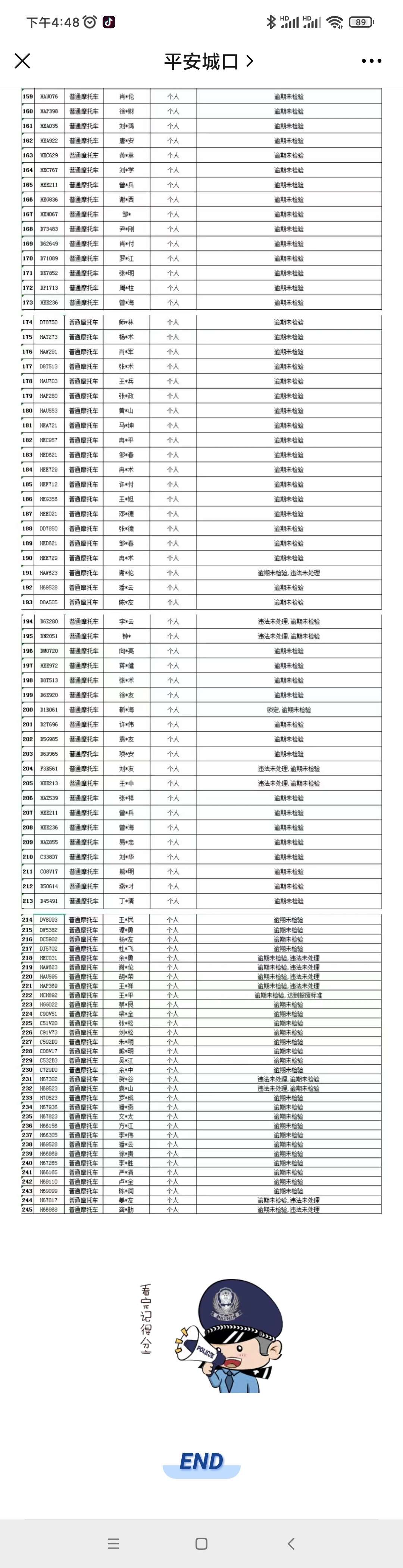 近日,城口县公安局交巡警大队对辖区存在逾期未审验、逾期未换证等违法未处理的重点车辆和驾驶人进行梳理曝光,请名单内人员尽快到车管所办理相关业务,将车辆违法进行处理。名单时间截止为8.20日。