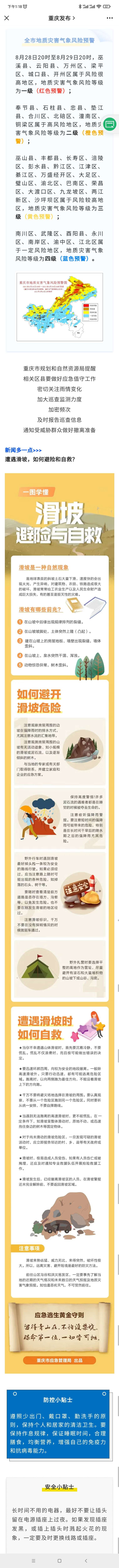" q( G, P- d2 E8月28日16时重庆市规划和自然资源局重庆市气象局联合发布全市地质灾害气象风险预警 4 g: _( k9 g7 }