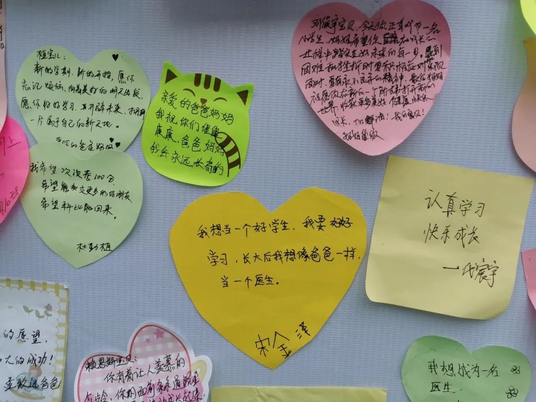 ) K) i& ~) C+ B1 D- F9 D+ ?孩子们把心愿贴在心愿墙上,片片纸笺就是梦想,带着梦去翱翔。2 K' F# z% M9 u7 U7 b% ~( E5 R