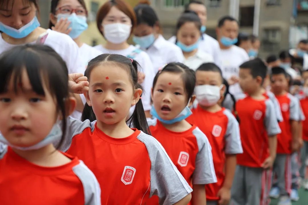 ( L7 p, {$ j% o8 f* t) g* e( c5 r怀揣着梦想和希望,新一批的实小娃来到了校园。值建党100周年之际,为启迪孩子们从小树立为实现中华复兴的伟大中国梦而努力学习的远大理想,9月4日,实验小学举行“明德启智,筑梦人生”为主题的2021年一年级新生入学仪式,以一场庄重又充满仪式感的新生专属入学礼迎接这群小萌娃的到来。' O" J8 V& u( _# d0 ^- e