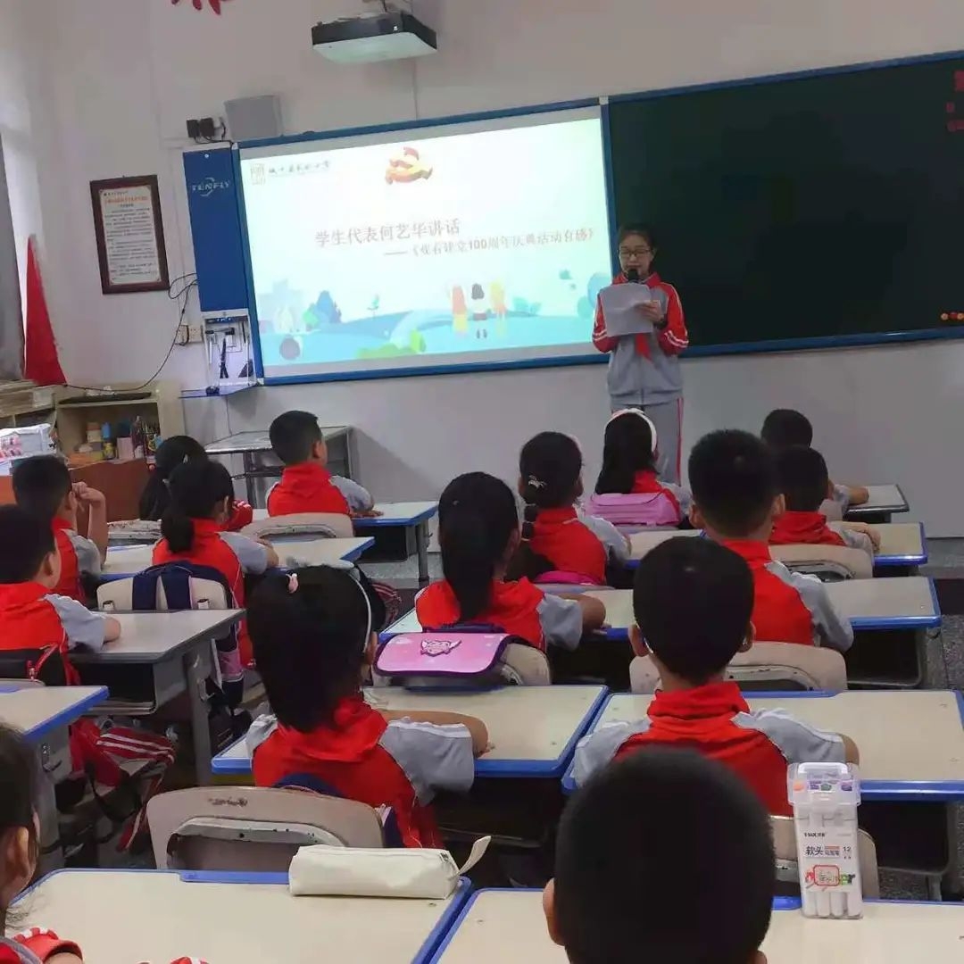 9 h% ?; n8 [# f4 z, }百年新征程,强国必有我,学生代表向大家讲述了党史知识,观看中国共产党100周年庆祝大会感想,号召同学们,作为新时代儿童,应以实际行动践行“请党放心,强国有我”的承诺,刻苦学习,树立理想,做一名德智体美劳全面发展的好少年。5 a5 T2 R: i0 |/ w; S+ I& v& @8 \