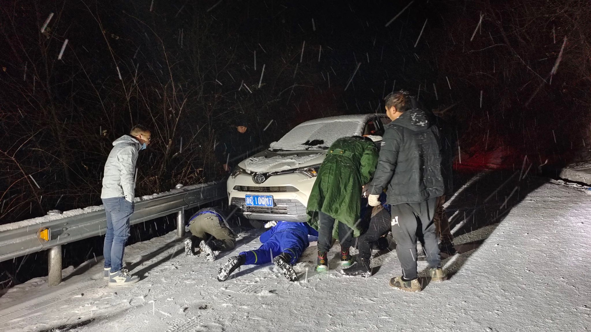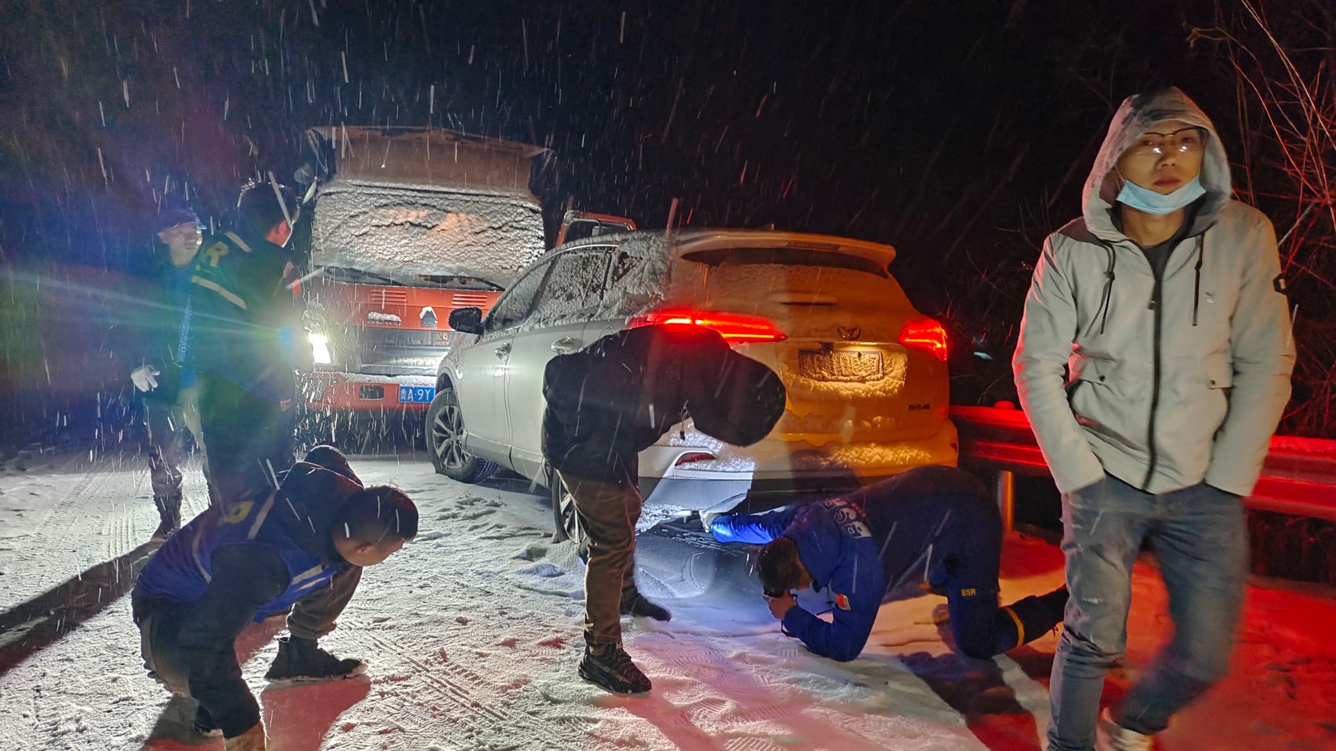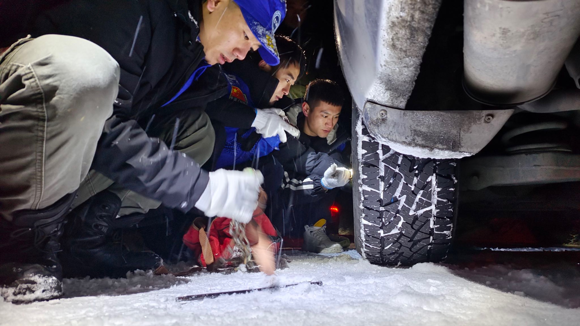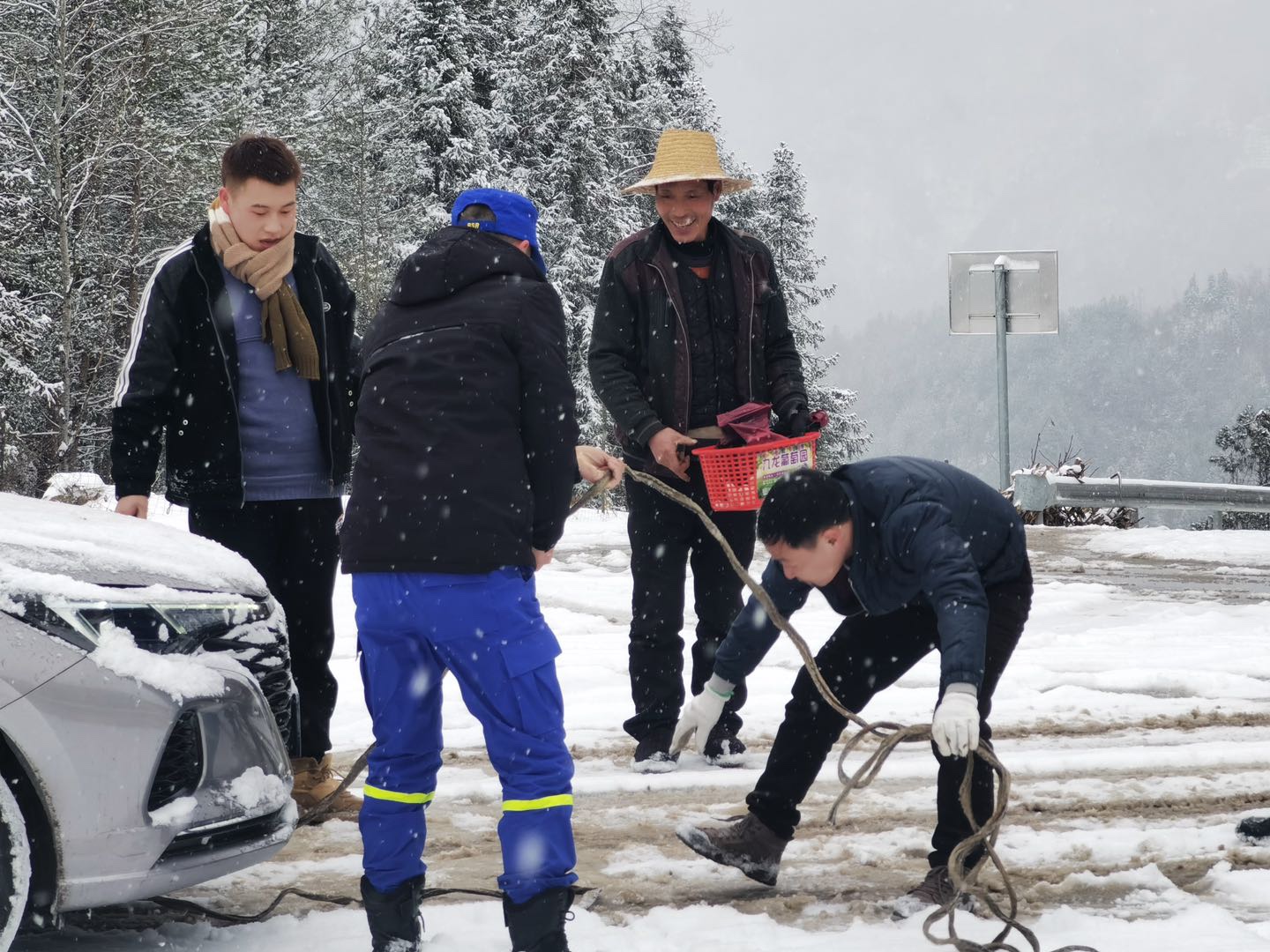 1月16日,城口蓝天救援队接到来自治平乡新胜村的求助,车辆被困结冰积雪路段,急需防滑措施。城口蓝天救援队统筹安排,即刻带上防滑设备前往求助地。