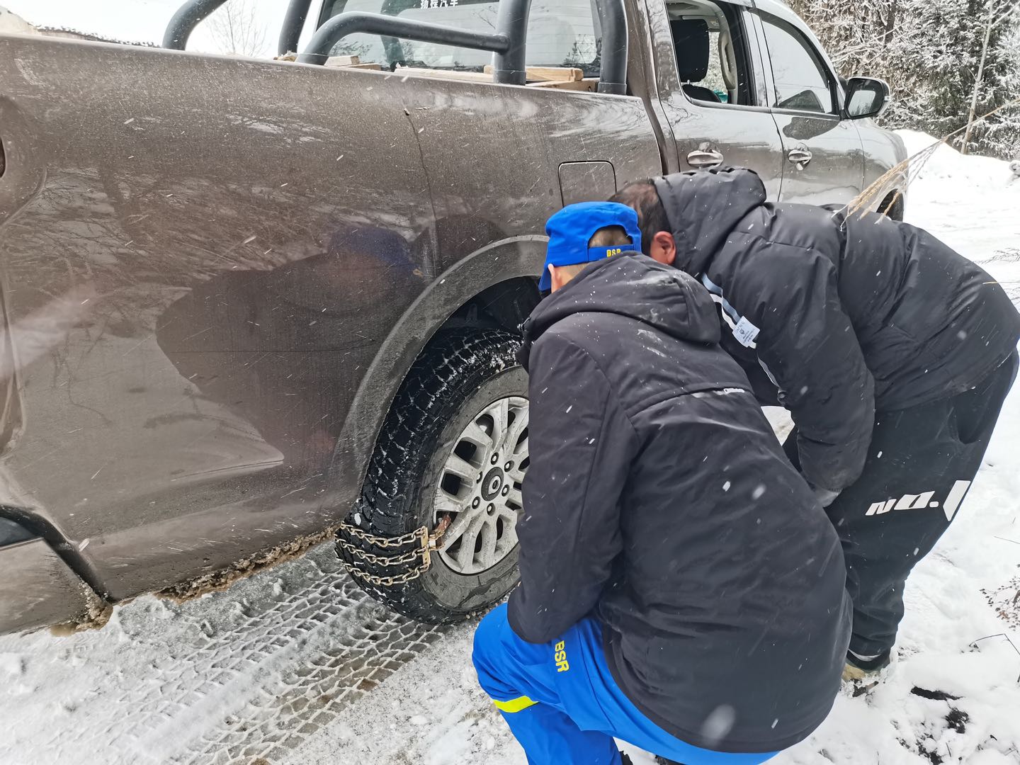 1月15日,城口蓝天救援队接居民求助,有车辆需要安装轮胎防滑链和换用雪地轮胎,需要我队前往城口县龙田乡卫星村苏家河坝进行救援,城口蓝天救援队迅速组织,在早晨6点前往!