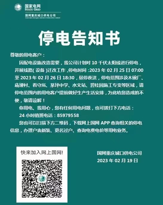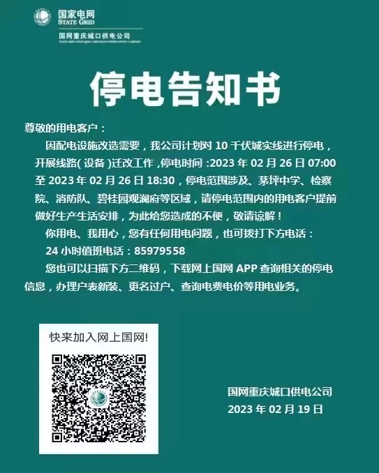 【停电通知】