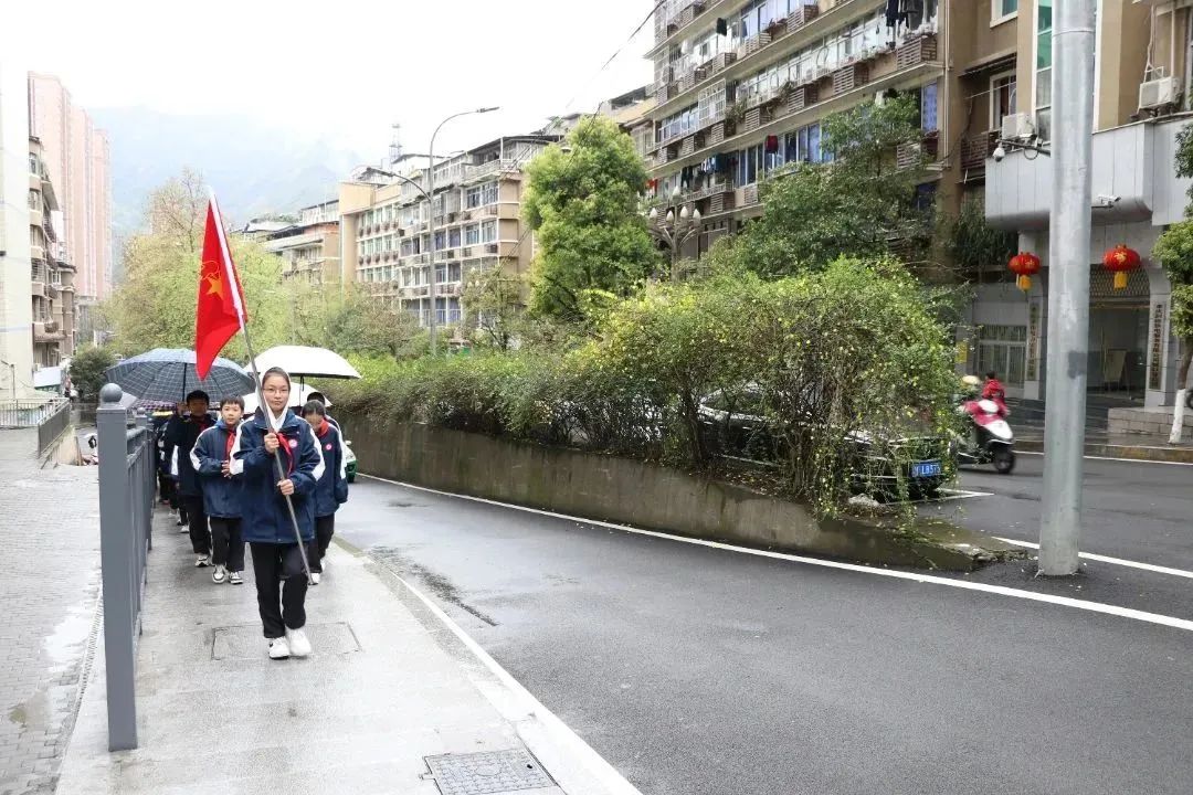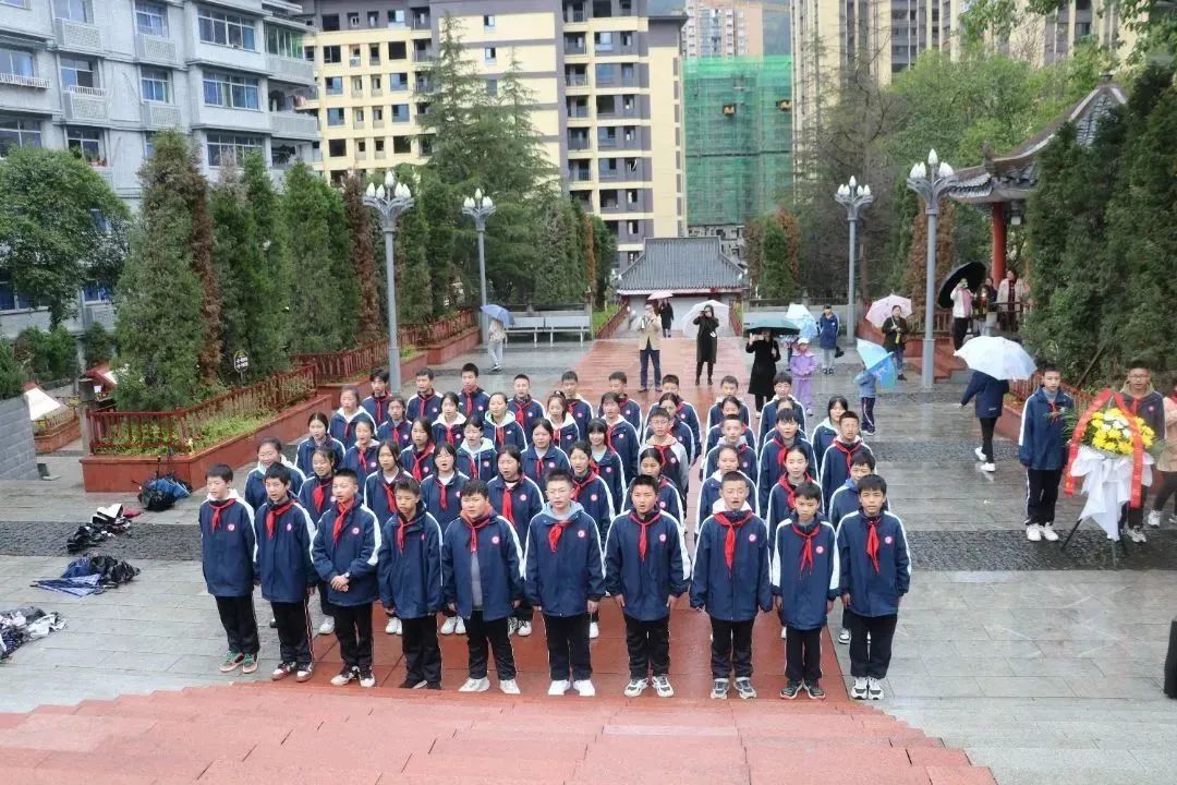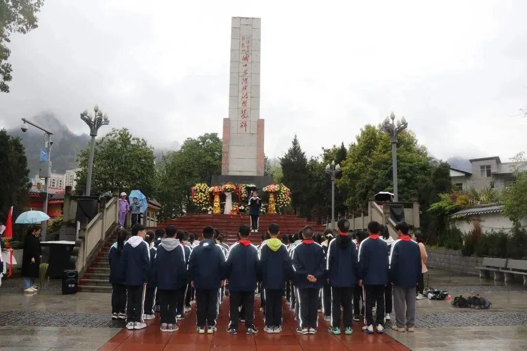 在清明节来临之际,为缅怀革命先烈,弘扬民族精神,加强爱国主义教育。4月5日,城口中学校团委组织开展了“铭记历史,缅怀英烈”清明祭奠活动。伴着蒙蒙细雨,团委成员和初一(9)班的全体师生们一起向城口苏维埃政权纪念公园出发,虽然天空不作美,但大家内心依旧激动万分,步伐坚定,很快众人就来到公园。