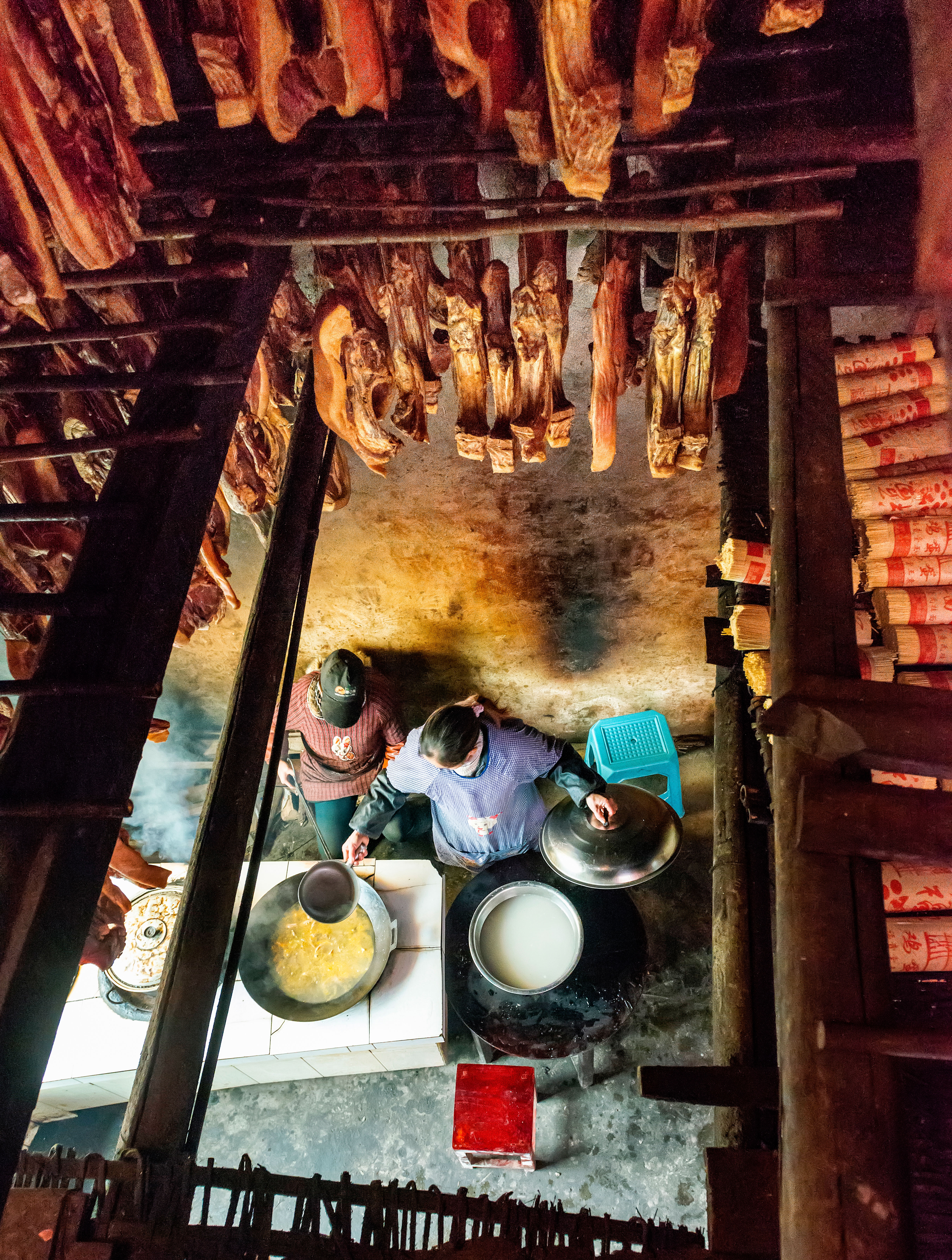城口人对于土豆的热爱,丝毫不亚于腊肉,甚至有专门的“土豆宴”。这个兼具裹腹感与味觉享受的小小颗粒,是优渥的农耕富硒环境赐予城口人的礼物,它在荒年可以满足原乡居民的基本温饱,在丰年亦可以带给山地人民愉悦的味觉享受。 在城口土豆最经典的吃法极具特点。将整颗粒的土豆煮熟并煎干,然后在土豆中间用筷子戳一个洞,将当地秘制的辣椒放入小洞里,然后夹起来慢慢享用~ 土豆的软糯和辣椒的清香刺激混合,奇妙的组合,让整个过程妙趣横生~  (土豆宴/黄春游摄)