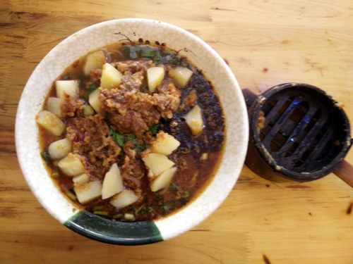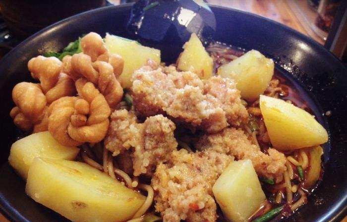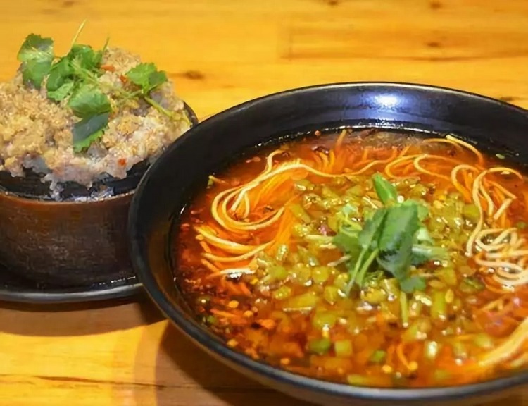 作为一个地道的重庆人,你一定吃过重庆小面,也一定吃过格格,但这两者的结合,你吃过吗? 在城口,就有一种特殊的面——格格面,它征服了一大拨人的胃,是城口人早餐的不二之选,还曾经上榜过《重庆好吃面地图》呢。  每天早晨你都会听到这样的喊声:“哎,老板,给我来二两面,再加一个格格哈!” 早晨城口的面馆总是那样忙忙碌碌的,可以说格格面真的是城口人早餐的灵魂,吃了精神一上午。当然不止早上,还有中午、晚上,甚至是吃宵夜,都会有它的存在。哪怕是在炎热的三伏天,也没有哪个城口人愿意舍弃它。  对于大多数人来说,格格并不陌生,其实就是因为它是用“蒸格”蒸出来的,大一点的蒸笼叫“大格子”,小的叫“小格子”,所以久而久之这种用格子蒸出来的菜就直接简化叫成了“格格”。  城口的格格,即用猪肉、羊肉、牛肉、肥肠、排骨等为主料,加上多种调料混合,以城口高山洋芋打底,装在竹子编成的小蒸笼(选用香气浓而持久的文竹)然后一层层叠起来用猛火蒸熟。蒸熟出锅,撒点香菜、葱花、花椒面,顿时,香味向四周蔓延。  小面就不多说了,跟格格摆在一起的,是重庆人最熟悉的麻辣小面。特别的是,面里还有酸爽开胃的泡豇豆。 在吃法上,你可以选择一口格格一口小面,但在城口,格格是专门用来拌面吃的。当小面上桌后,便将格格加入面中混合而吃。  格格中鲜嫩细腻的荤菜,加上城口洋芋独有的软糯,再搭配小面麻、辣、鲜、香,一口下去瞬间幸福感爆棚。 如何通过一碗面来鉴定他是不是城口人?哈哈哈!当然就是看他碗头有没有加麻花。要知道城口人吃面是喜欢放麻花的,这也算是当地人的独特吃法吧!  来源:城口县文化和旅游发展委员会微信公众号、城口旅游网 * t; q! S5 Y8 l4 s